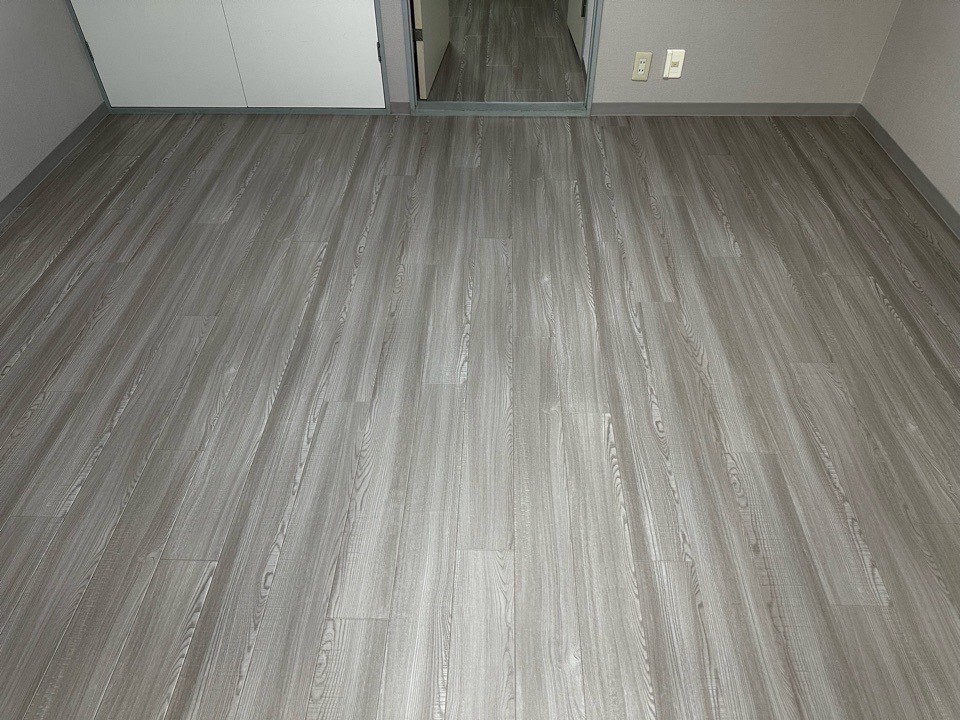 I様邸にて、以前クロスを貼ったお部屋にクッションフロアを貼りました。